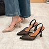 Women's New Line Buckle Strap Mesh Baotou Thick Heel Sandals Women's Summer Gentle Pointed High Heels