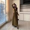 Podzim Zima Nový korejský styl Dámská móda s dlouhým rukávem Rolák Teplý dlouhý maxi Pletený svetr svetr Šaty s páskem