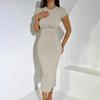 Žebrované Dámské Jednobarevné Dlouhý rukáv Rozparek Mini Šaty Čtvercový límec Bodycon Sexy Streetwear Party Club Podzim Zima