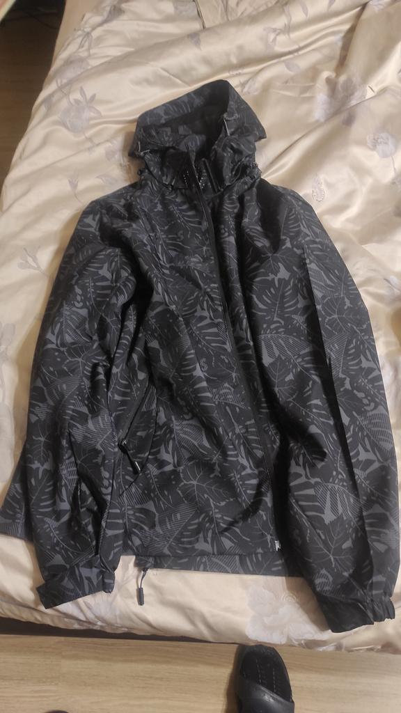 Má potištěnou kapuci, zapínání na zip a dvě boční kapsy na zip.