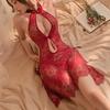WTEMPO Brand Halter Dress Long Temperament Sexy Ladies Pajamas Lace Halter Backless Nightgown Ice Silk Temptation Loungewear Dresses