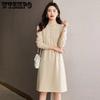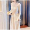 Dámské středně dlouhé pletené šaty Podzimní a zimní móda Teplý svetr Jednobarevné Univerzální dlouhé šaty