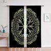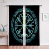 Retro Rune Pattern Dark Style Záclony, Viking Shield Print, Dětský pokoj, Obývací pokoj, Kuchyňská dekorace, 2ks