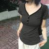 Women Long Sleeve Knit Tops Casual Striped 3/4 Button Pullover Shirt with Pockets for Club Streetwear
