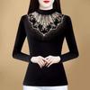 New Winter Style Fashionable German Velvet Thickened Iron Diamond Base Half Turtle Neck Slim Large Size Long-sleeved T-shirt