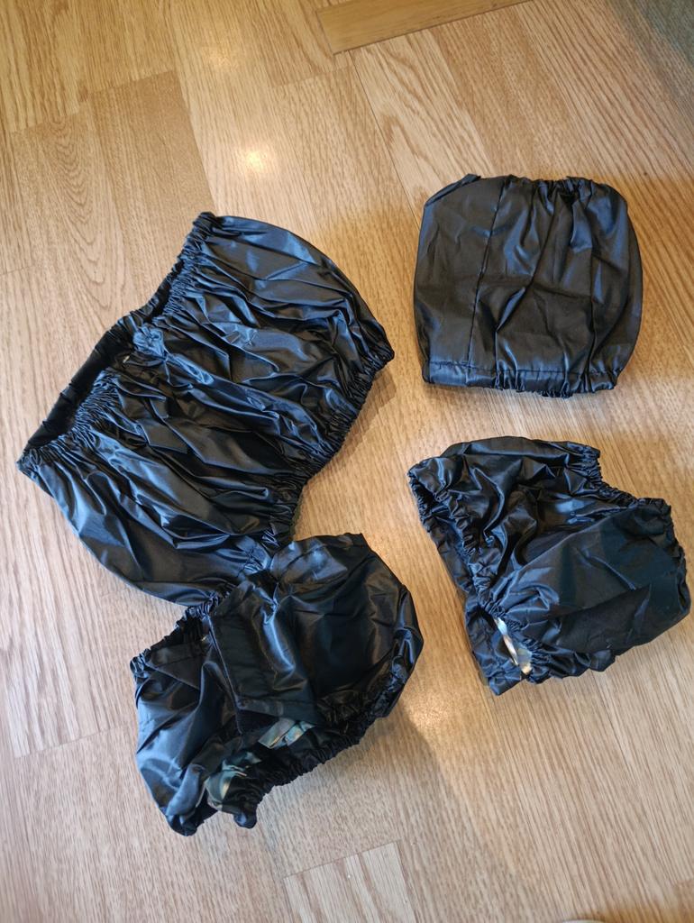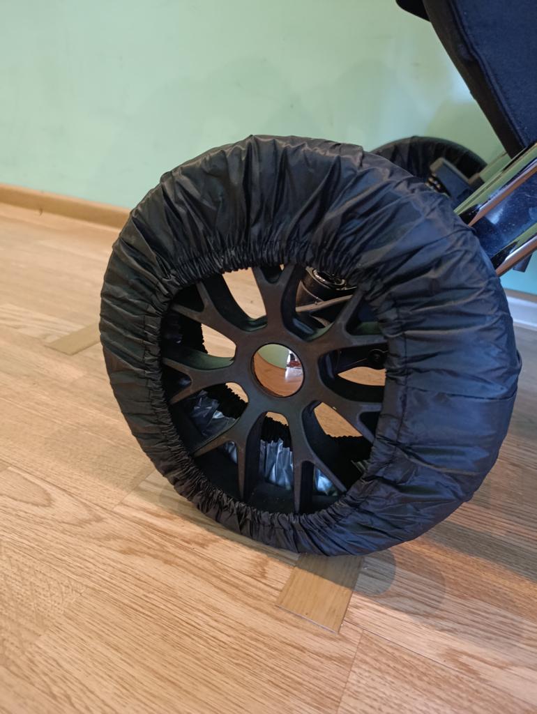 Potahy na kola kočárku V sadě jsou 4 kusy.: ✅2 kryty na velká kola o průměru od 30 do 40 cm.; ✅2 pouzdra na suchý zip (nasazují se uvnitř rámu) pro průměr kol od 19 do 25 cm. Vyrobeny z nepromokavého materiálu, spolehlivě zadržují uvnitř nečistoty, písek a vlhkost. Snadno se oblékají a perou, rychle schnou. Vhodné pro kočárky s předními otočnými koly. Svou práci plní perfektně. S objednávkou jsem spokojená. Doporučuji 👍