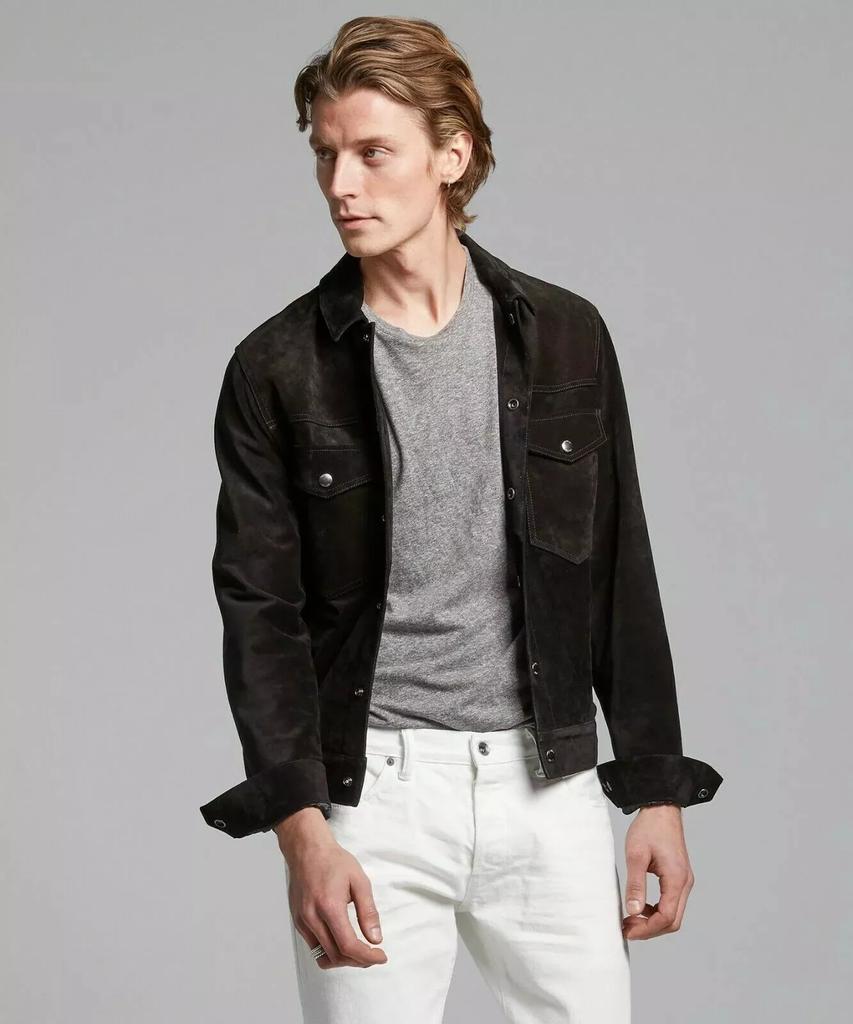 Fashionable Stylish Soft Casual Men's Shirt Black Suede Handmade Genuine Leather