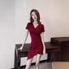 Women's sexy babes pleated waist irregular dress tide