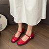 Internet celebrity retro red block heel small leather shoes women's 2024 new spring and autumn French small fragrance style Mary Jane single shoes