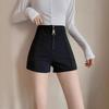 Dámské černé kraťasy s vysokým pasem a zipem do áčka, model 2024 - úzký střih a sexy, jaro/léto