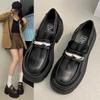 Retro platform loafers women's 2024 new autumn Velcro thick heel single shoes versatile British style small leather shoes