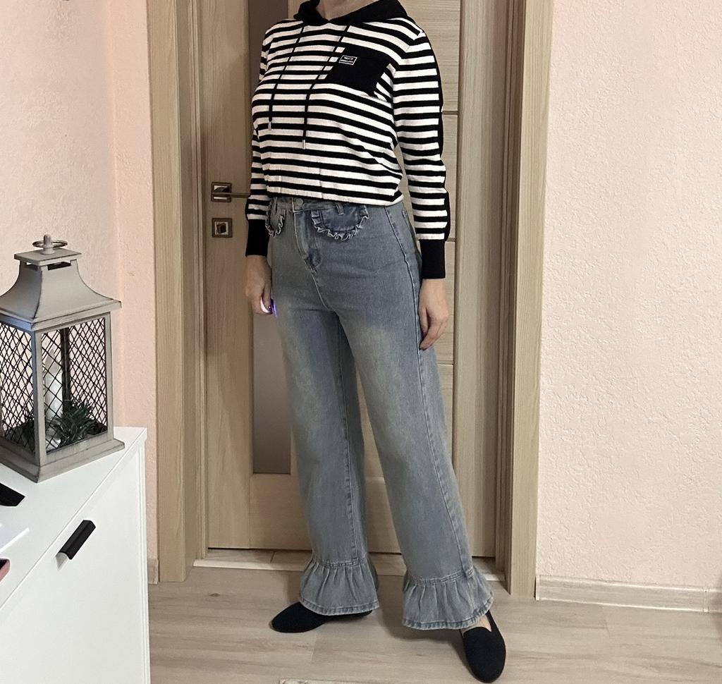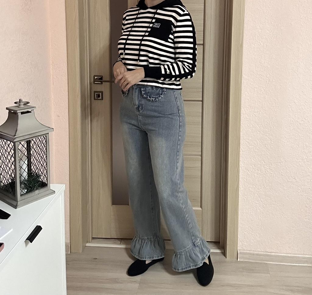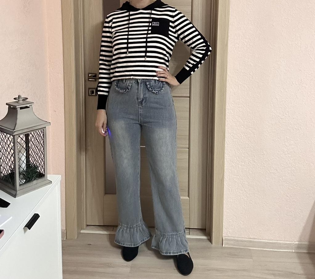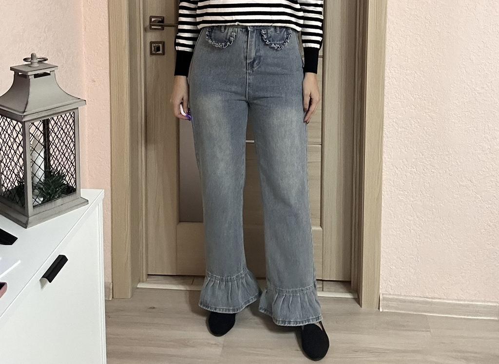 American Style High Waist Straight Leg Jeans with Playful Ruffles Trendy and Slim Fit