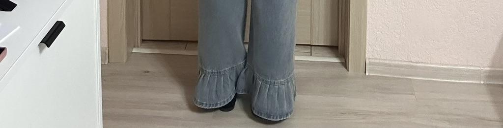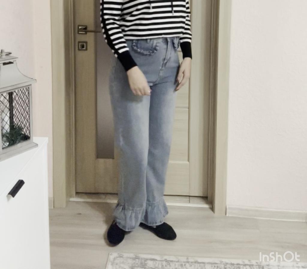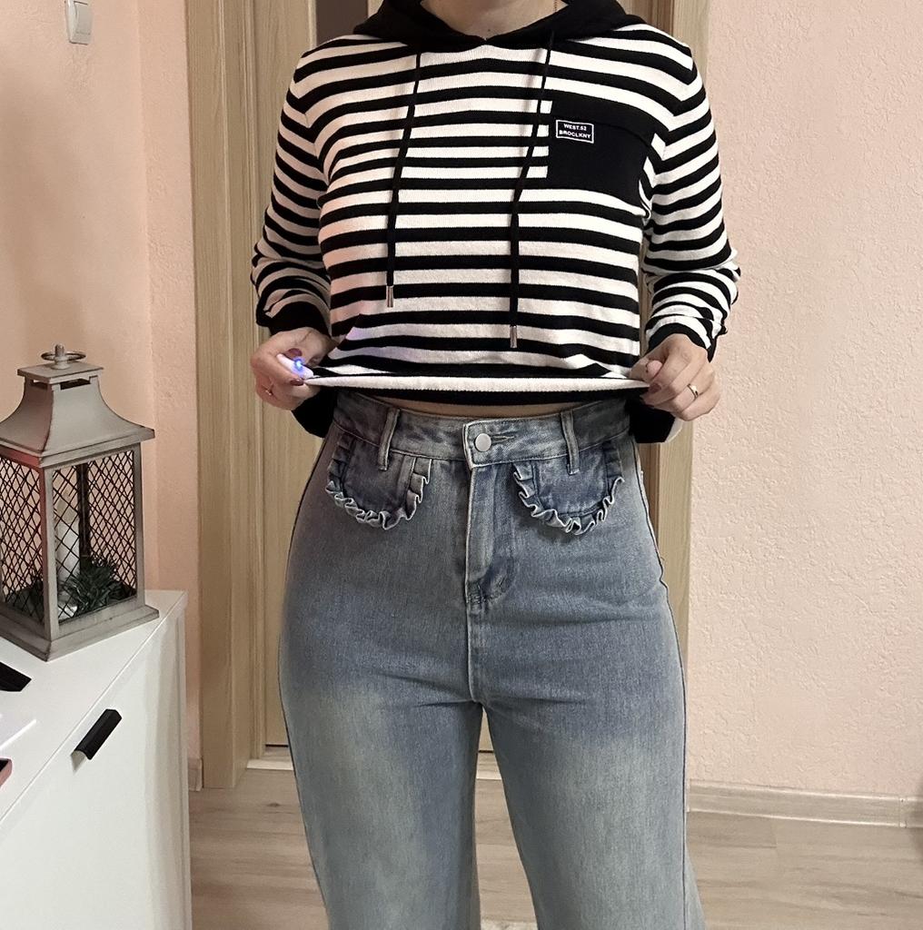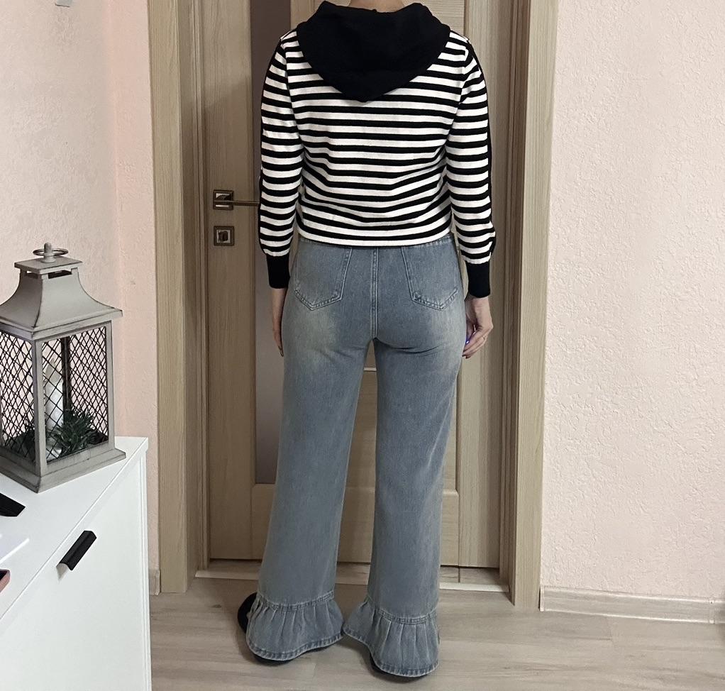 American Style High Waist Straight Leg Jeans with Playful Ruffles Trendy and Slim Fit