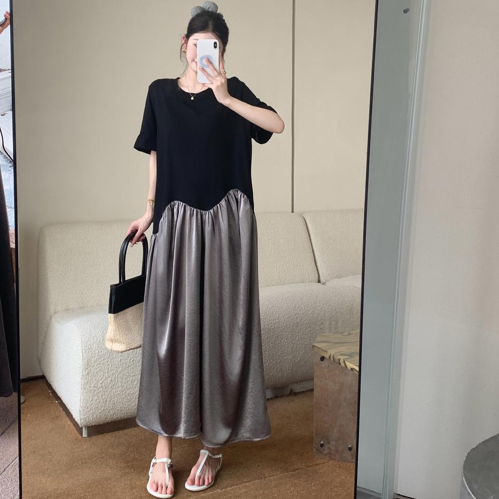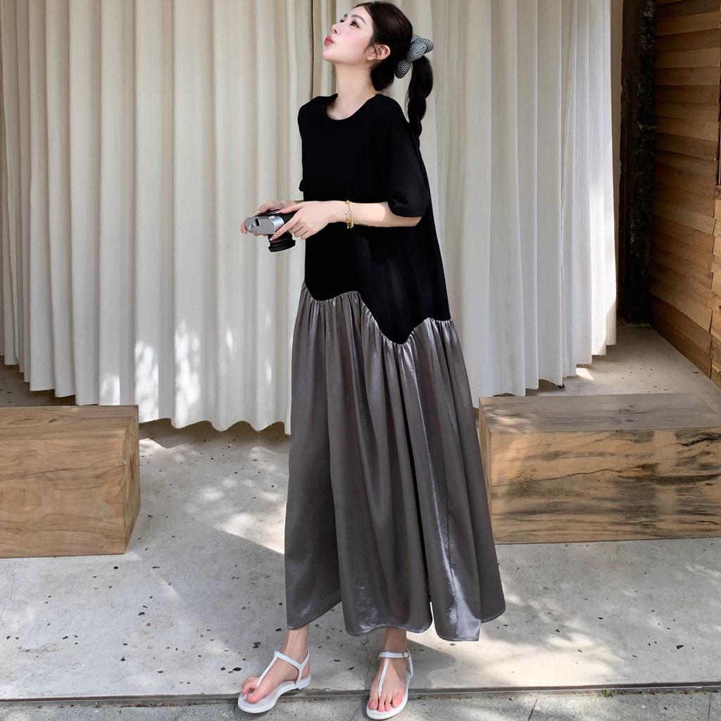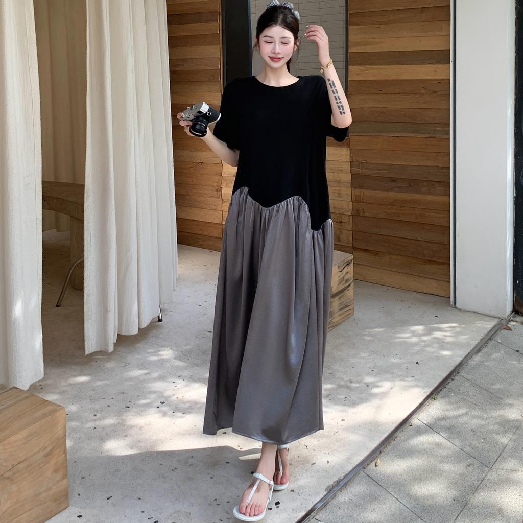 Dimanaf 2025 Letní Šaty Plus Size Dámské Ležérní Vintage Šaty O-Výstřih Prošívané Nadměrné Základní Dlouhé Volné Šaty