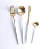🍜【24-piece set contents】6 knives + 6 forks + 6 dinner spoons + 6 teaspoons 🍝【Fashionable】A beautiful, one-piece design, the surface incorporates German high-temperature titanium finishing technology, and the color is vivid, making it a unique cutlery that gives a sense of luxury and fashion. 🍜【Easy to hold】The shape is easy to hold, has a texture, and is extremely smooth to the mouth, making it easy to use. 🍝【Durability】The all-stainless steel is less likely to accumulate bacteria and water, so it can be kept clean at all times and can be used for a long time. It can also be used in dishwashers and dish dryers, so it can be used hygienically. An integrated knife and fork set that achieves both luxury and hygiene. 🍜【Rust resistant】This cutlery set is made of high-quality stainless steel blade steel that is resistant to rust, wear-resistant, tough, and hard, and is full of luxury. For restaurants, commercial use, and home use. A steak knife with rounded edges is safe and suitable for children.