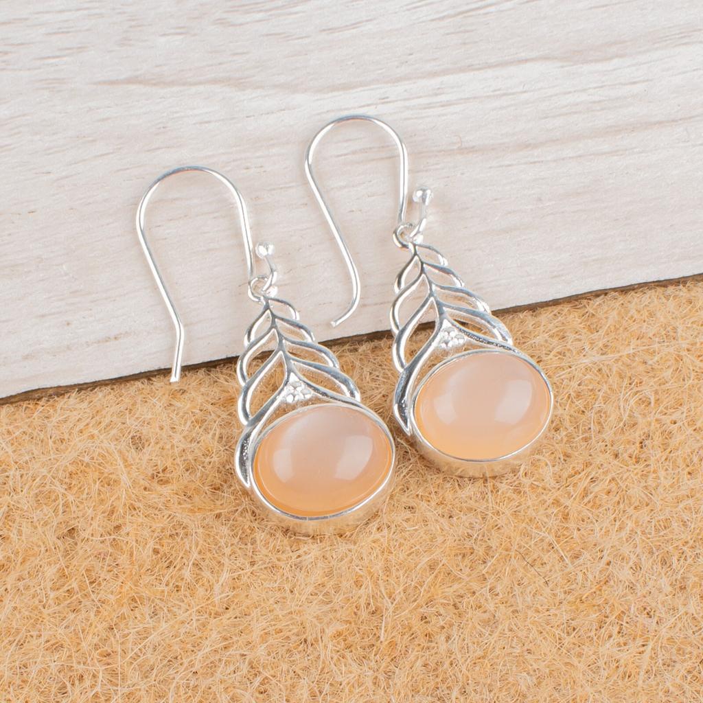 Oval Peach Moonstone Gemstone 925 Sterling Silver Jewelry Wedding Earrings 1.64" CE-1-29