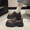 Round head Lun brown platform small leather shoes women's new autumn versatile skirt thick heel single shoes