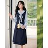 Autumn design feeling waist and thin fake two-piece faculty interview long-sleeved dress