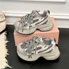 2025 spring new popular thick-soled heightened mesh dad shoes women's color matching lace-up versatile sports and leisure shoes