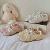 Sheepskin version~ Grape mother has the same ballet style, sweet girl, round head satin sports board shoes, bow, casual moral training