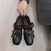 Haute couture version~ French square head shallow mouth Mary Jane shoes women's new metal buckle flat bottom retro one-word buckle small leather shoes