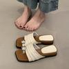 Holiday style metal pinch temperament square head grass woven cover toe cool slippers women's summer wear 2025 new