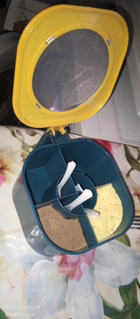 Sada kulatých plastových dóz na koření 4 v 1 s integrovanými lžícemi, nádobami na sůl, pepř a koření pro organizér na kuchyňskou desku