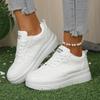 Fashion Platform Women Sneakers Breathable Casual Shoes Solid Color Lightweight Vulcanized Shoes Autumn Lace Up Tennis Shoe Plus Size 43