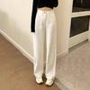 White denim wide-leg trousers, women's pear-shaped figure, high waist, small man, loose hip covering, large size straight mopping pants