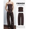 Denim Cotton Strapless Chest Wrap Top 0103060 Mid Waist Strap Decoration Width Jeans 0103011