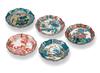 Nishikai Toki Hasami Ware Small Plates, Dyed Nishiki-e Design, Gift Boxed, 12 cm Diameter, Set of 5, 31987