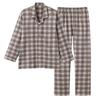 Bavlněné pyžamo Gunze Vyrobeno z barvené flanelové tkaniny Pánské 100% (Přední otevírání), Hnědá, Japonsko, (SF4314)