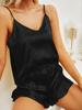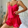 This luxurious women's pajama set is designed for ultimate comfort and a touch of elegance. Made from premium silk, this set is perfect for warm summer nights. It features a sleeveless camisole that provides a breathable and silky soft feel against the skin, paired with matching shorts for a relaxed fit. Ideal for lounging at home, this sexy and sophisticated set is a must-have for anyone seeking style and comfort in their nightwear.