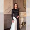 Autumn Women's New Temperament Slim Long-sleeved Dress Contrasting Square Collar Hip Fishtail Dress