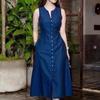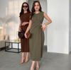This elegant sleeveless dress is designed for those warm summer days, offering both style and comfort. Crafted from high-quality polyester, it features a round neck and a flattering slim fit. The dress is accented with a chic button detail and a slit, adding a touch of sophistication and allure. Whether you're looking for a day-to-night outfit or a stylish choice for a special occasion, this dress is a versatile addition to any wardrobe.