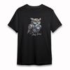 Women's Trend T-Shirt Mechanical Owl Artwork with Yellow Glowing Optics Design