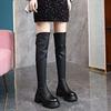 Rundkopf Stiefel mit dicker Sohle und hohen Absätzen Damen Elastische Stiefel 2025 Herbst und Winter Neu Vielseitig und Figurumschmeichelnd Temperament Dünne Kniestiefel