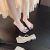 Όμορφη τσάντα κεφάλι ψηλοτάκουνα παντόφλες γυναικείο καλοκαιρινό φόρεμα μαργαριταρένιο χοντρό τακούνι με παντόφλες φούστας