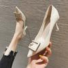 Versatile black high heels women's slim heels spring and autumn season new high-end workplace comfortable pointed single shoes