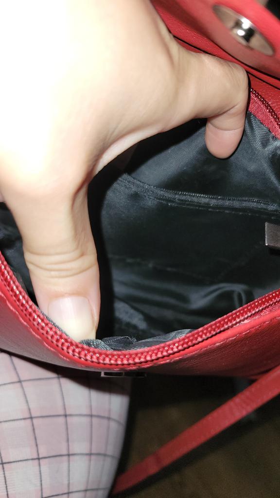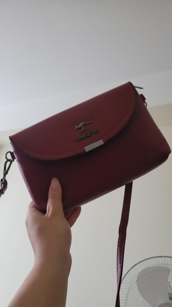 It's neither big nor small, it seems quite okay. The color is a medium-intensity burgundy, it has an inside pocket.
