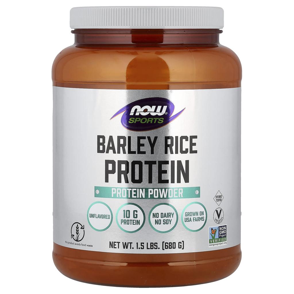 NOW® Sports Barley Protein is a plant-based protein powder produced through a sustainable "upcycling" process. While upcycling ingredients are safe, they are often prohibited for various reasons, providing nutritional and safety benefits. Barley rice protein dissolves easily in all liquids and has a smooth consistency without a bitter aftertaste. This quality barley rice protein is the perfect vegan option, offering great taste and sustainability. This Non-GMO Project Verified product is grown and manufactured in the USA.