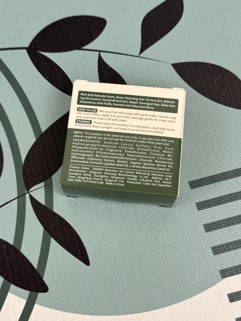 * solid shampoo * ⭐⭐⭐⭐⭐ 💥𝗟𝗶𝗲𝗳𝗲𝗿𝘇𝗲𝗶𝘁 18 days 💥𝗟𝗶𝗲𝗳𝗲𝗿𝘂𝗺𝗳𝗮𝗻𝗴 Included in the scope of delivery is 1 shampoo in the form of a side piece in the corresponding fragrance direction. This solid shampoo can be ordered in several different scents, I chose the rosemary variant.. The whole thing was packaged in bubble wrap and arrived safely and sound at my place.. 💥𝗤𝘂𝗮𝗹𝗶𝘁ä𝘁 I've always wanted to try such a solid shampoo and now I finally had the opportunity to do so. 😃🙏 The shampoo is packaged in a normal cardboard box and additionally the shampoo is heat-sealed in a foil.. APPLICATION: Wet hair and scalp with warm water, then lather with the solid shampoo by rubbing until a rich lather forms. Then gently massage the hair. Finally, rinse with water.. I am totally thrilled how well the solid shampoo lathers and how good it smells. Features: 🌟Rich and delicate foam, 🌟 Deep cleaning 🌟refreshing 🌟 Relieves dandruff and itching 🌟 Damaged hair is repaired 🌟 Hair becomes more voluminous and softer 🌟 smooth, silky, and shiny hair Storage: The solid shampoo must be stored cool and dry 💥𝗙𝗮𝘇𝗶𝘁 I am totally thrilled with this solid shampoo, as it is totally rich and cleans and lathers the hair super well. Afterwards, my hair was super easy to style, smooth, and shiny.. I would recommend the product without reservation ⭐⭐⭐⭐⭐