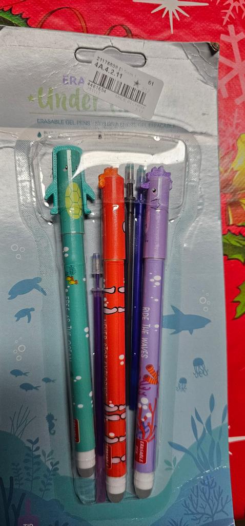 3 Pcs Erasable Gel Ink Pens Cartoon Seahorse Clownfish Turtle Erasable Ballpoint Pen with Built-in Eraser Rollerball Pen for School Office Supplies
