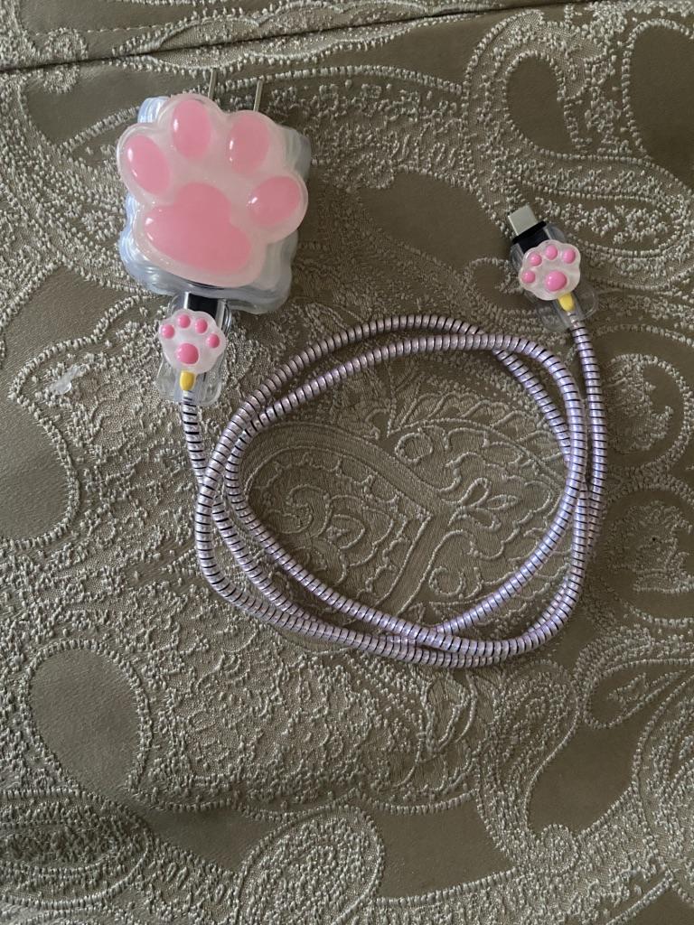 New Charging Protection, Usb Data Cable Protection, Charging Head Protective Cover, Pink Cat Claw Assembly, Suitable for iPhone18/20w Charger