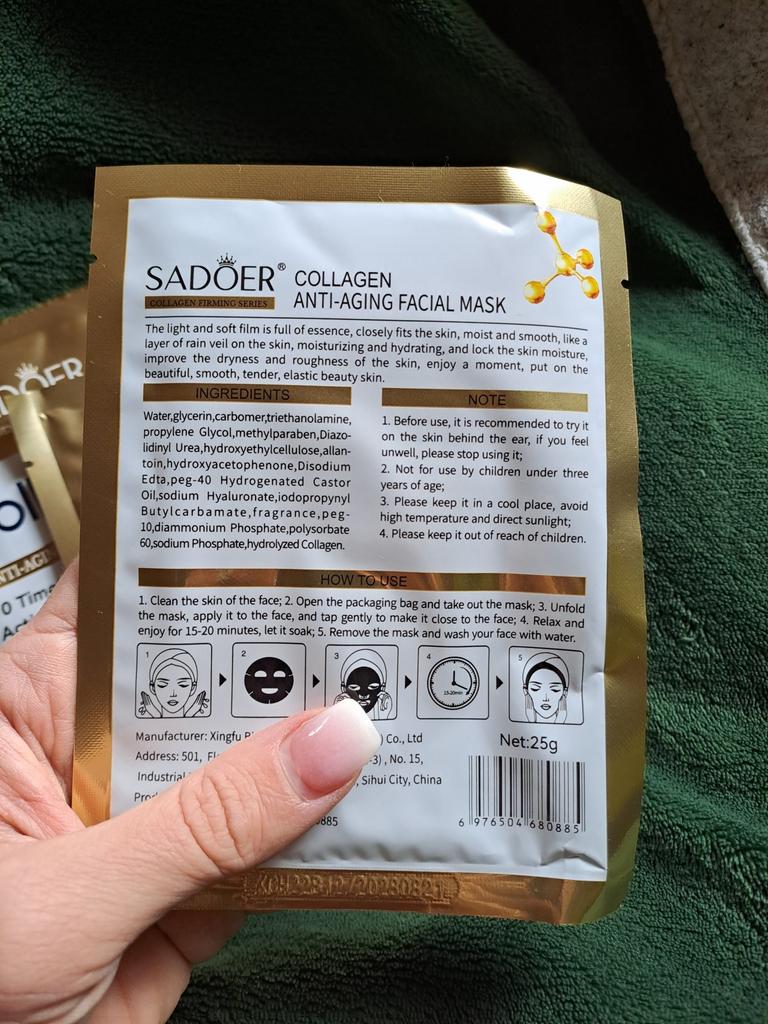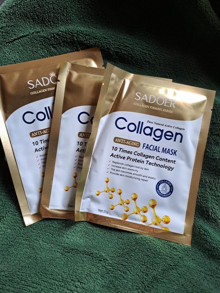 SADOER Collagen Facial Masks with Active Protein Technology - Deep Moisturizing & Firming, 16% Collagen Content for Enhanced Skin Health, Skin Firming