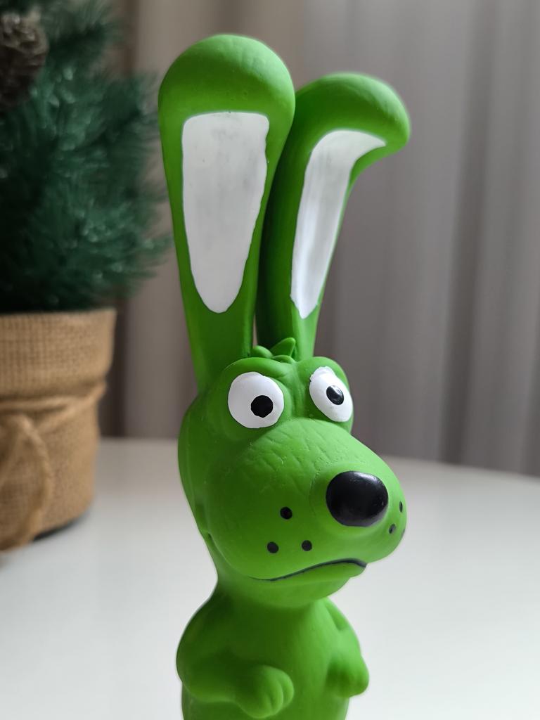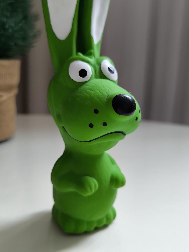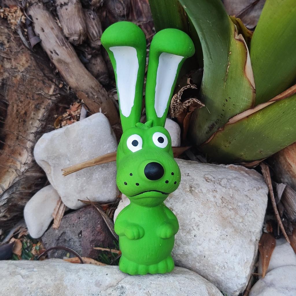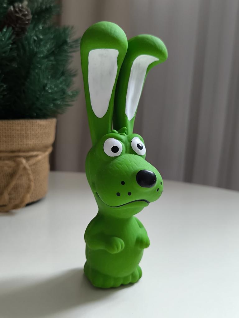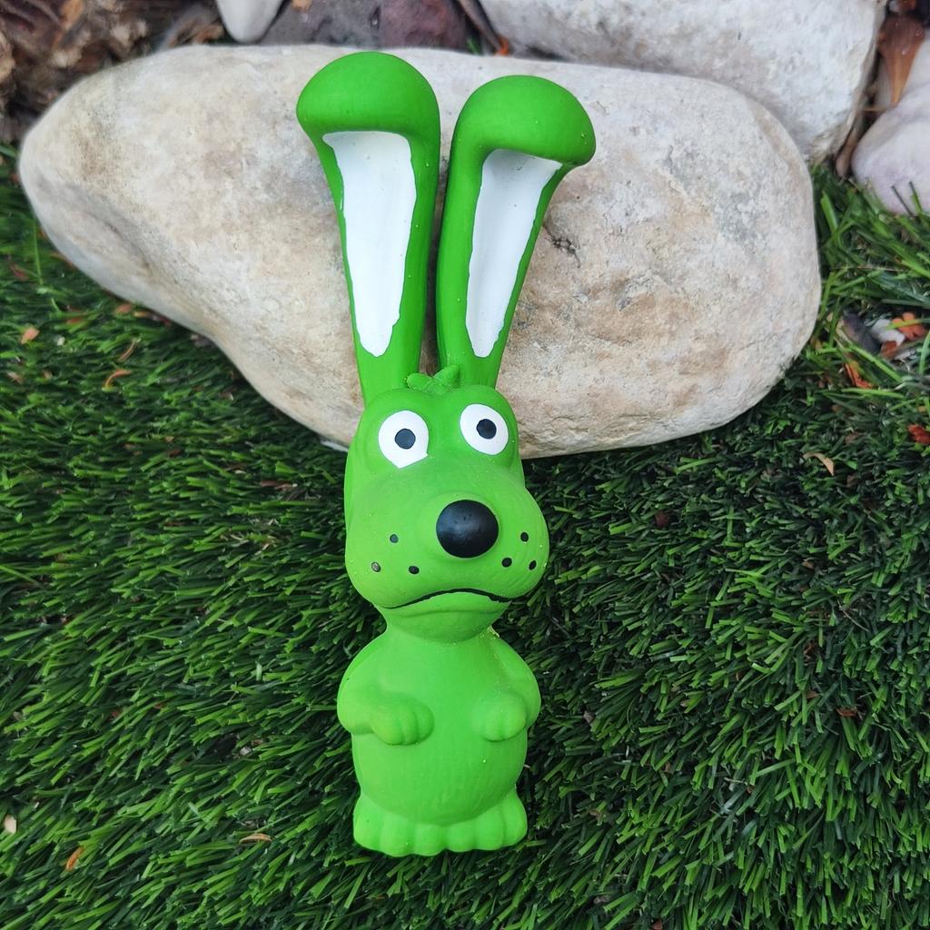 I bought this latex toy in the shape of a rabbit with long ears for my dog, and it was exactly what he needed! The toy is made of high-quality rubber resin, feels very durable and relatively soft, so it both survives the chewing and doesn't damage the teeth.. The sound it makes when pressed really catches my dog's attention, and it's great when he's bored. In addition, it also helps him with teeth cleaning thanks to its texture.. The size (17*5 cm) is perfect – not too big and not too small, suitable also for medium and small dogs. Definitely a fun, interactive, and very useful toy. Highly recommend!