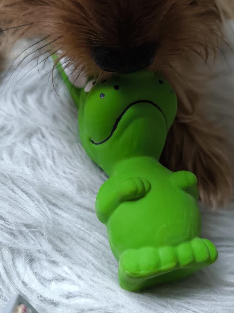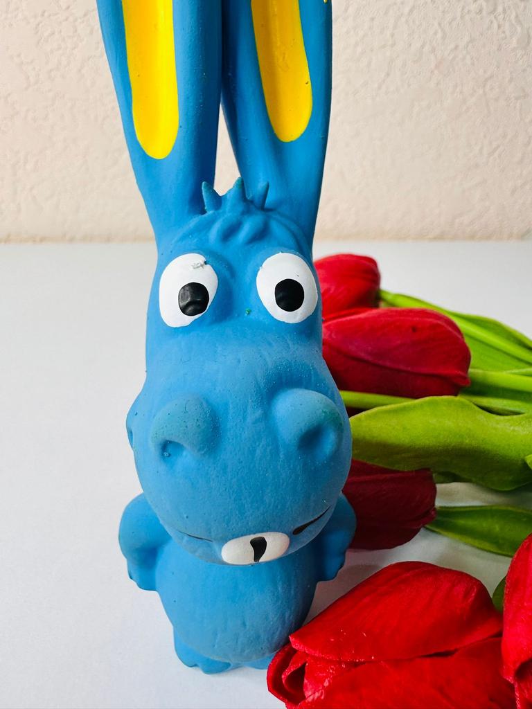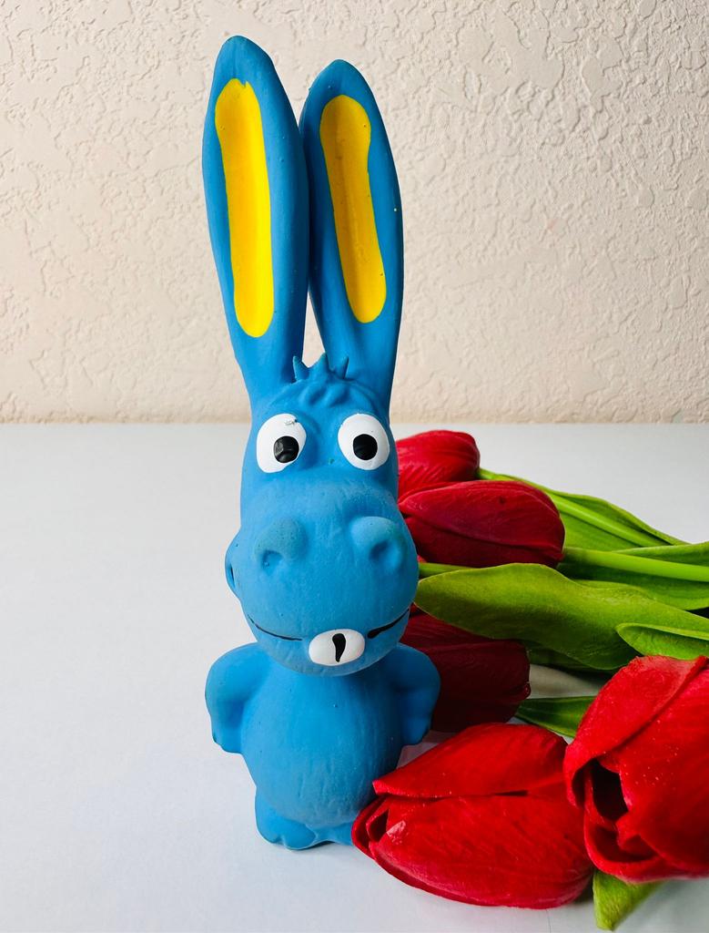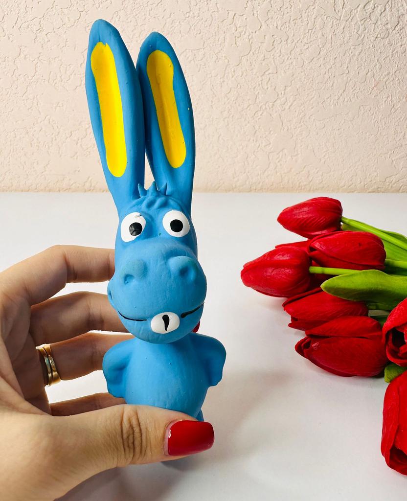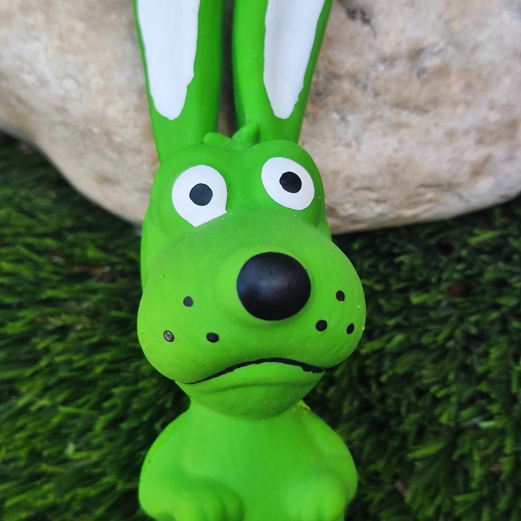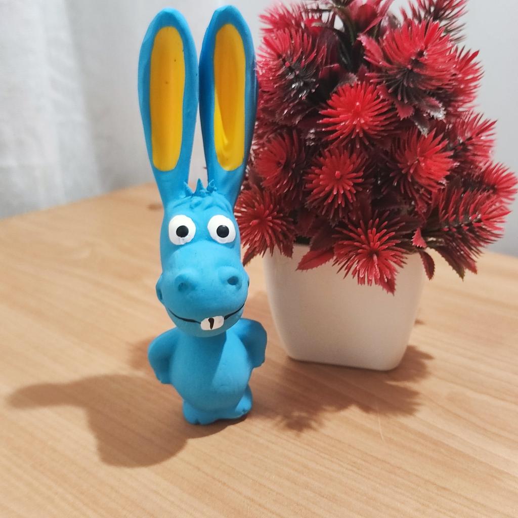 I bought this latex toy in the shape of a rabbit with long ears for my dog, and it was exactly what he needed! The toy is made of high-quality rubber resin, feels very durable and relatively soft, so it both survives the chewing and doesn't damage the teeth.. The sound it makes when pressed really catches my dog's attention, and it's great when he's bored. In addition, it also helps him with teeth cleaning thanks to its texture.. The size (17*5 cm) is perfect – not too big and not too small, suitable also for medium and small dogs. Definitely a fun, interactive, and very useful toy. Highly recommend!