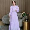 Varrukatega vöökohaga lillelised õrnad pikad kleidid