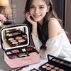 Makeup Organizer with Mirror Light 3 Adjustable Brightness Travel Train Case Cosmetic Bag Portable Storage Partition Waterproof
