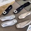 Light luxury rhinestone single shoes women's new flat-bottomed commuting pregnant women Doudou shoes with skirts evening shoes